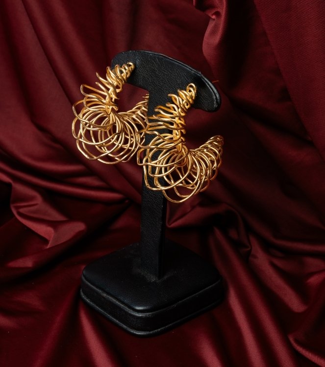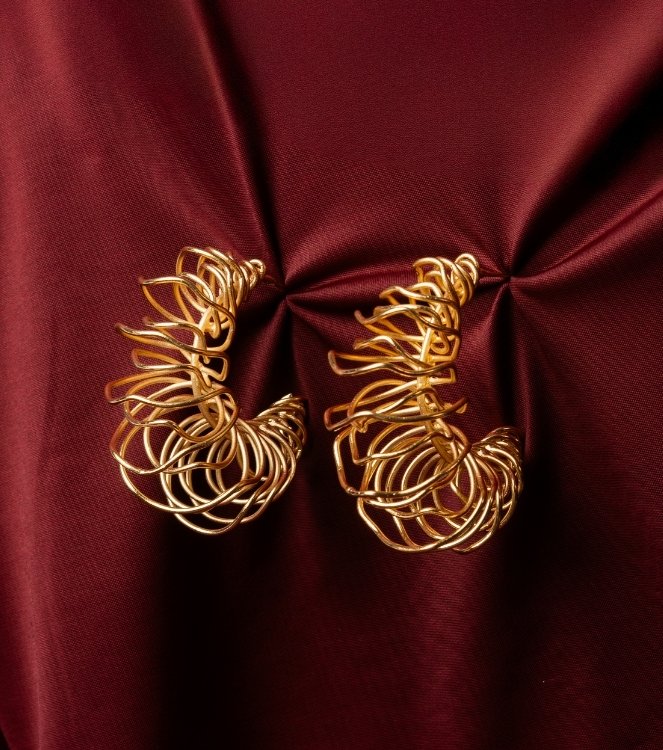 Opulent yet refined, these hoop earrings feature an intricate lattice design interwoven in circles. These hoop earrings are designed for a modern maximalist look.